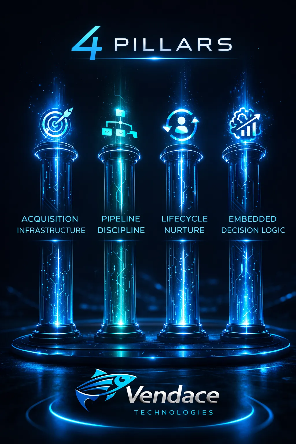 Vendace deploys productised acquisition, pipeline, and lifecycle infrastructure, installed as Industry Editions that convert demand into booked revenue and retention.